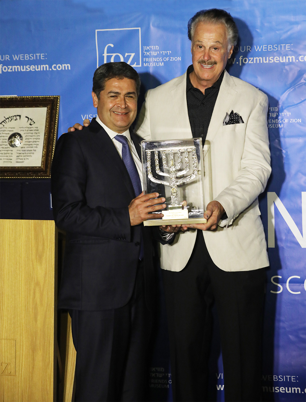 President Hernandez of Honduras receives the Friends of Zion award and prays at the Friends of Zion Center