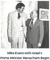 As a Middle East analyst and award-winning journalist, Mike Evans provides commentary on Middle East affairs for a variety of media. He has appeared on many network television and radio shows including Good Morning America, Crossfire, Nightline, The Good Morning Show (Great Britain), and appears frequently on the Fox Network, CNN World News, NBC, ABC, and CBS. His articles have been published in The Wall Street Journal, USA Today, The Washington Times, The Jerusalem Post, and others.
